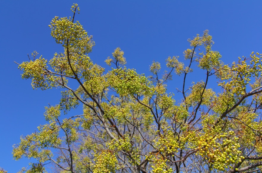 Here is the roster of Chinaberry trees’ bad behaviors. First, beware, their leaves and berries are toxic to dogs, cats, horses, humans, and probably lots of other creatures. Supposedly they can kill. But not birds. Birds can and do eat them and excrete the seeds (see, none of this is pleasant), and the trees are hardy and bad to spring up everywhere, and they grow fast. Third, each tree then bears thousands upon thousands of green berries that stay on the tree until they turn yellow and mushy and yucky and then fall off, and that makes a huge mess, and when I was a girl . . . well, I’ll just tell you the worst of the story: When I was a girl there were no adult-planned entertainments for children. We shuffled around the yard and entertained ourselves. It was a challenge. My little brother, when he was about five, entertained himself by stuffing his bluejeans pockets with over-ripe yellow mushy Chinaberries. I was the oldest child, and a girl to boot, and guess whose job it was to prep the laundry and empty the boys’ pockets. In my whole life it was the worst job ever.