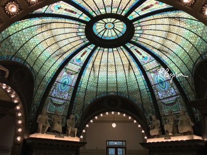 . Beauty is indeed in the eye of the beholder, and my lame excuse is, I guess I just hadn’t been ready to behold this ’til now. I wonder how many other people have been in there too busy and/or too stressed to look up and around. Starting from the top, here is its fabulous stained glass dome, and some of the marble statuary. There is more to it, of course, that I’m leaving out. I am in love with this building that was designed in an era when beauty could prevail over efficiency.