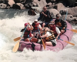 Then they did it in spades.  They named their project 4 Survivors, 4 Rivers, 4 a Cure. Their first river was in Colorado, in the Rockies. They whitewater (whitewater!) rafted the headwaters of the Arkansas. This is a photo of them there.