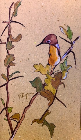 Six years ago this charming tiny bird alit like a grace note near me as I was sketching on the shore of Lake Maumelle.  It was about 4″ long. I did my hasty best to capture on paper something of its shape and markings and its posture, and how it caught the light, and I made some notes in my head about it, and then too soon whit!, it was gone. But thankfully there remained the thorn bush it had been in: something simple (and still!) that I could draw in surety to add to my sketch. Nature often lends a helping hand to try-hards.