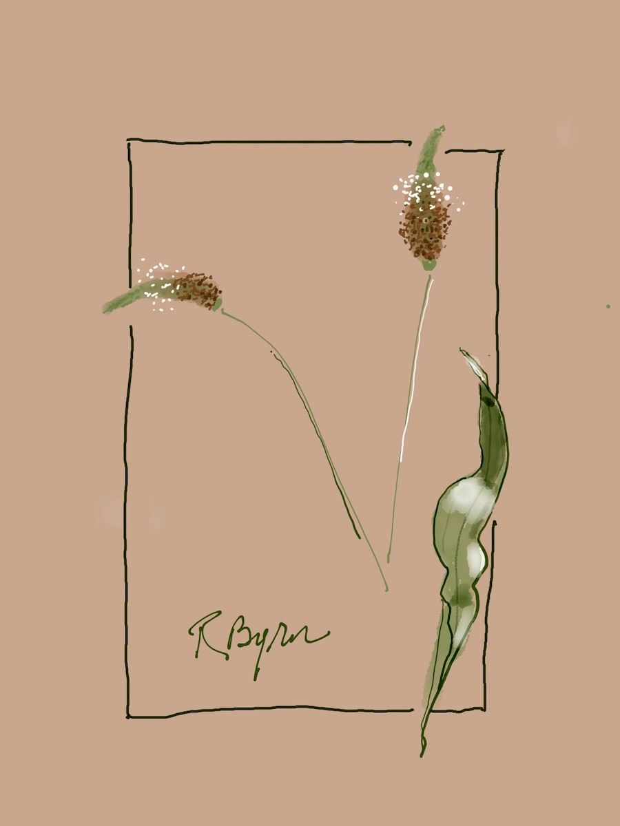 My ancestors called this graceful plant Lamb’s Tongue. It is Narrowleaf Plantain, Plantago Lanceolata, aka Ribwort Plantain, English Plantain, and maybe other names.