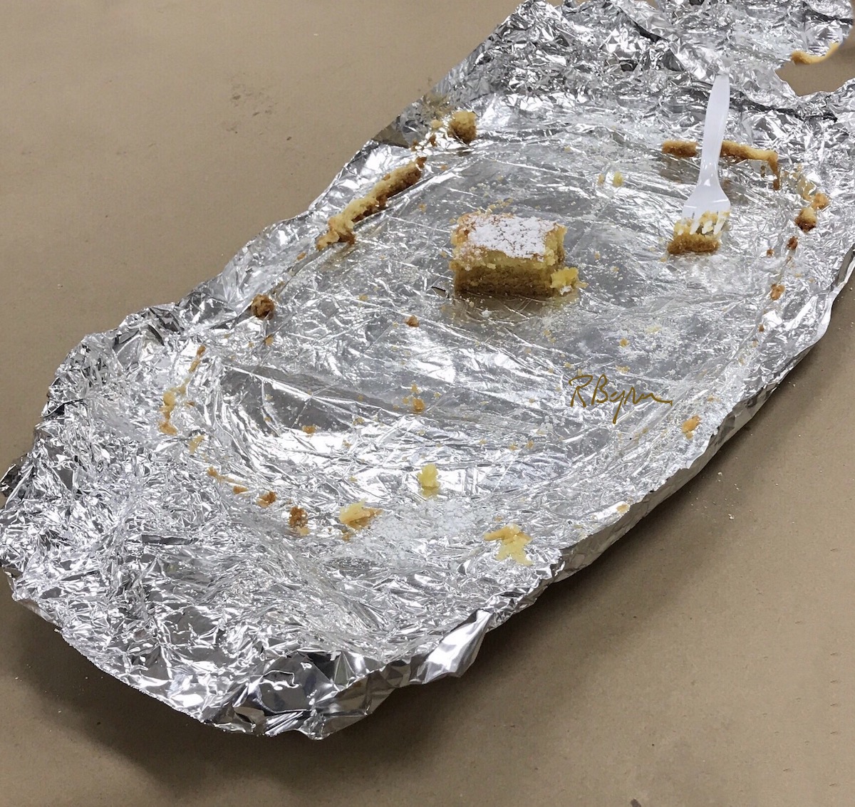 After a potluck, one little square of exquisite homemade lemon bar remained. A woman was trying to get someone, anyone, to take it. This woman genuinely didn’t want it herself, and she was not from here originally. My Californian friend said to her, “You’re not going to get anyone to take that. They’re all from here and they never take the last piece of anything.” The woman said, “Oh God, that’s why my husband does that!”