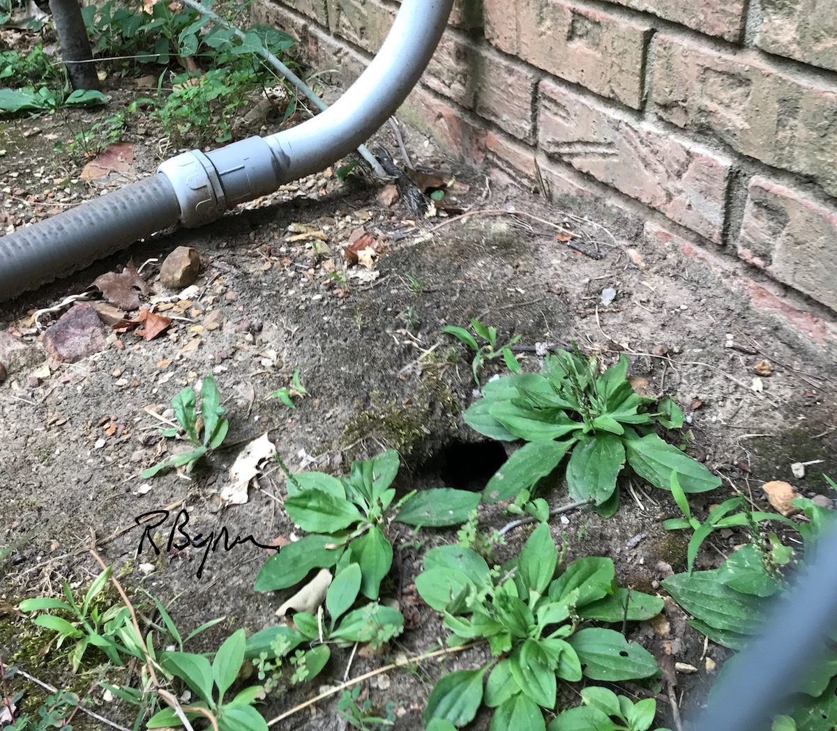 But aha! one night there was also a guest dog. Two dogs. Guest Dog is half Beagle, half Terrier, but at least this night she was less than the best example of her breeds. She is not the one who “scared up” (as we say here) the rabbit; Home Dog did. When the noisy chase began, and all the way through it, Guest Dog stood around still sniffing things, trying to get information through her nose about what was happening. The rabbit did not believe this could happen: near the end of the chase, with Home Dog far behind as usual, Bunnybunny ran smack into Guest Dog. They were both knocked for a loop. Bunnybunny recovered quickly and left the yard. Guest Dog got up slowly and headed for the house.