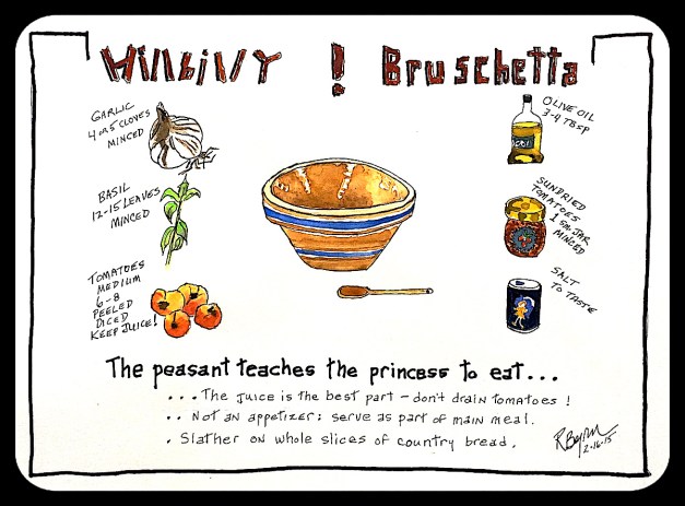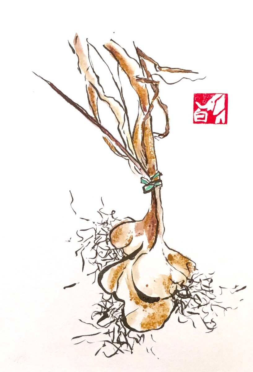 This is my season for scarcity of home-grown garlic. It’s early Spring and other plants are burgeoning everywhere, but when I go to my pantry and take the lid off my terracotta garlic house and look to see what’s left: naught but two or three cloves. And a long time before I can replenish. Mid-June at the earliest is when the local backyard gardeners harvest. Meanwhile, I’ll get only grocery store garlic. Clean and white, yes, not a speck of dirt in their controlled-looking little roots. But not as clever in the tasties.